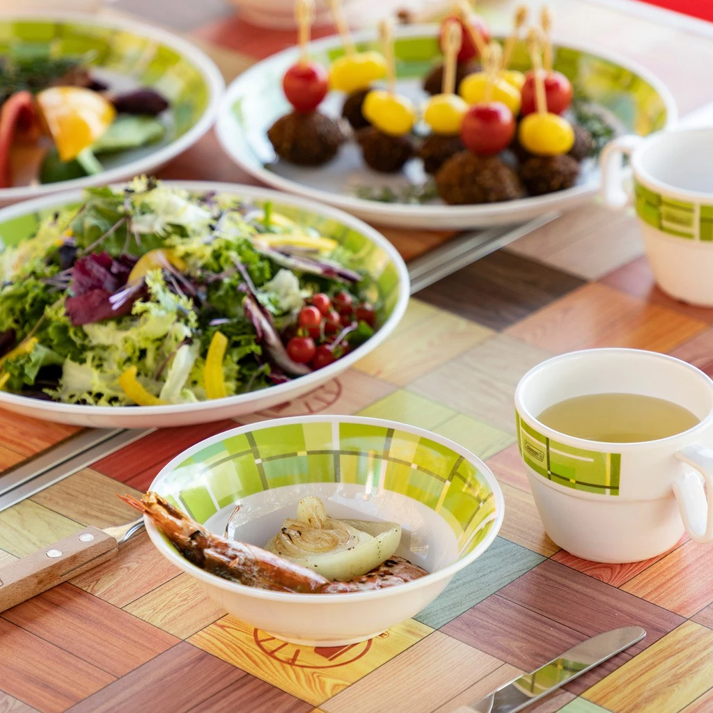 ◍ 可輕鬆去除油漬的美耐皿餐具。