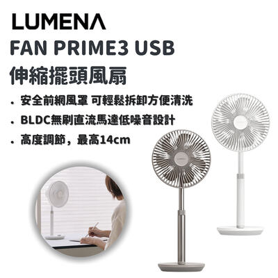 LUMENA 韓國 | FAN PRIME3 USB伸縮擺頭風扇 | 2色 |
