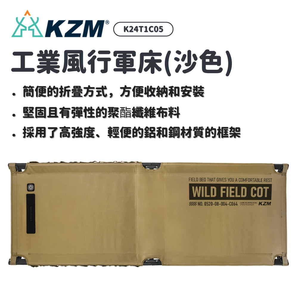 KZM 韓國 | K24T1C05 工業風行軍床(沙色) | 露營床 折疊床 行軍床