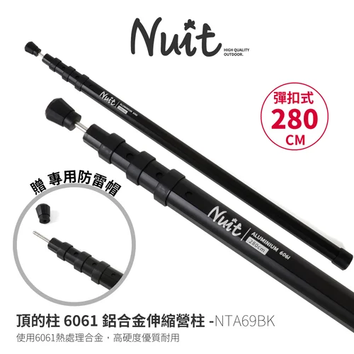 NUIT 努特 | NTA69BK 頂的柱 6061鋁合金伸縮營柱94-280cm | 鋁合金伸縮營柱