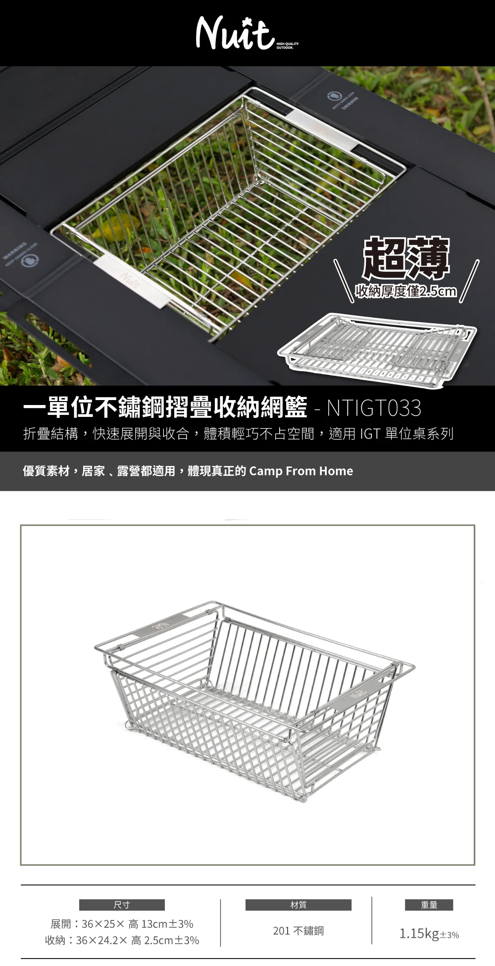 NUIT 努特 | NTIGT033 一單位不鏽鋼摺疊收納籃 | IGT單位桌配件 適用各款單位桌