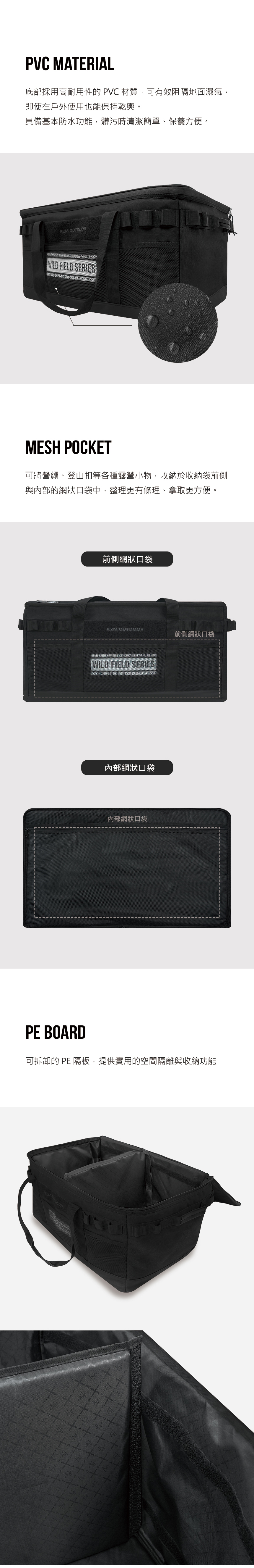 ◍ 容量為 50L的工業風裝備收納袋(L)。