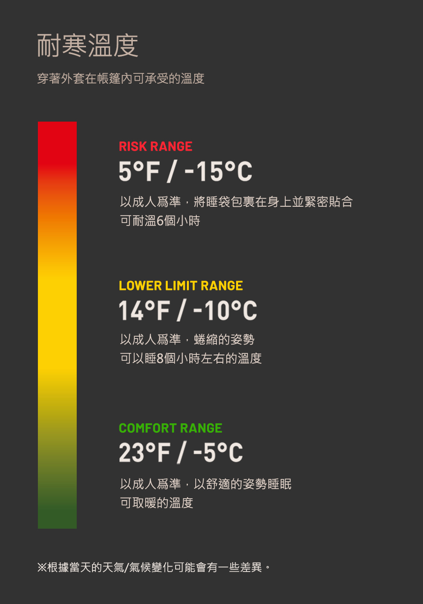 .耐寒度:-5℃ ~ -15℃ (僅供參考)