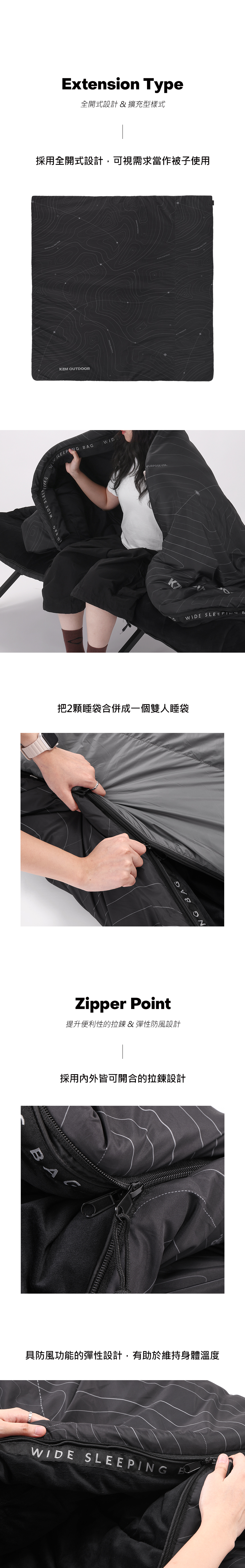◍ 拼接2個睡袋,可以當被子或睡墊使用。