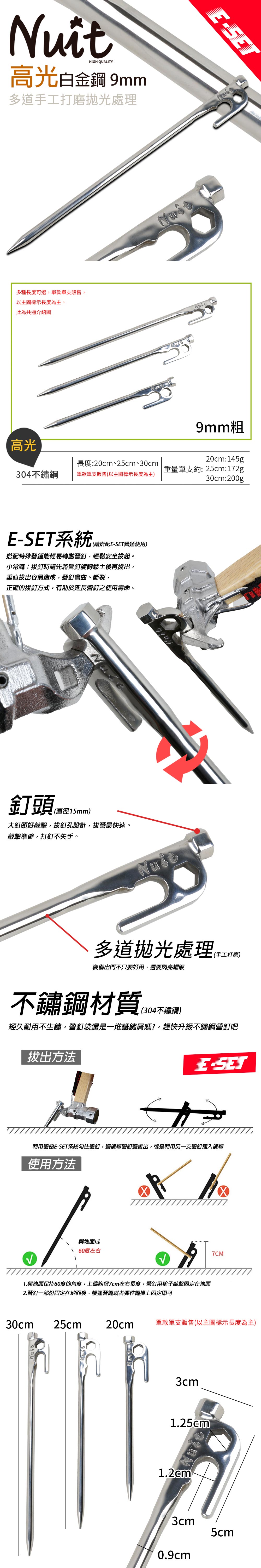 .商品名稱:E-SET白金鋼 304不鏽鋼營釘25/30CM 直徑9mm