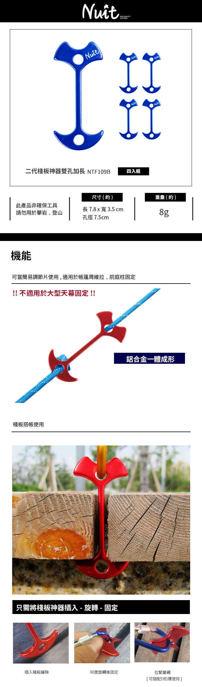 NUIT 努特 | NTF109B 二代棧板神器雙孔加長7.8cm (藍麒麟魚骨釘) | 木棧板營釘