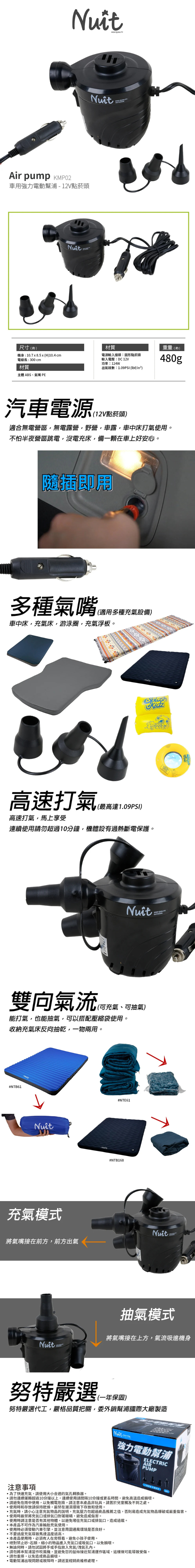 NUIT 努特 | KMP02 | 車用打氣幫浦高磅數電動充氣幫浦 | PSI 1.09 點菸頭電動打氣幫浦