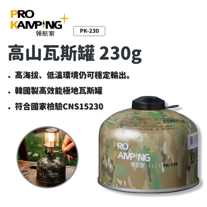 · 商品名稱:Pro Kamping 領航家 | PK-230 領航家高山瓦斯罐230g (韓國製)